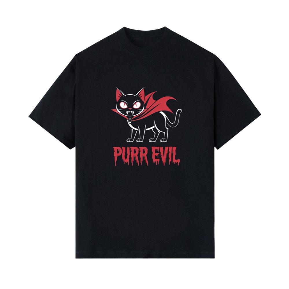 Purr Evil Cat Vampire Funny Halloween Cartoon Design T-Shirts