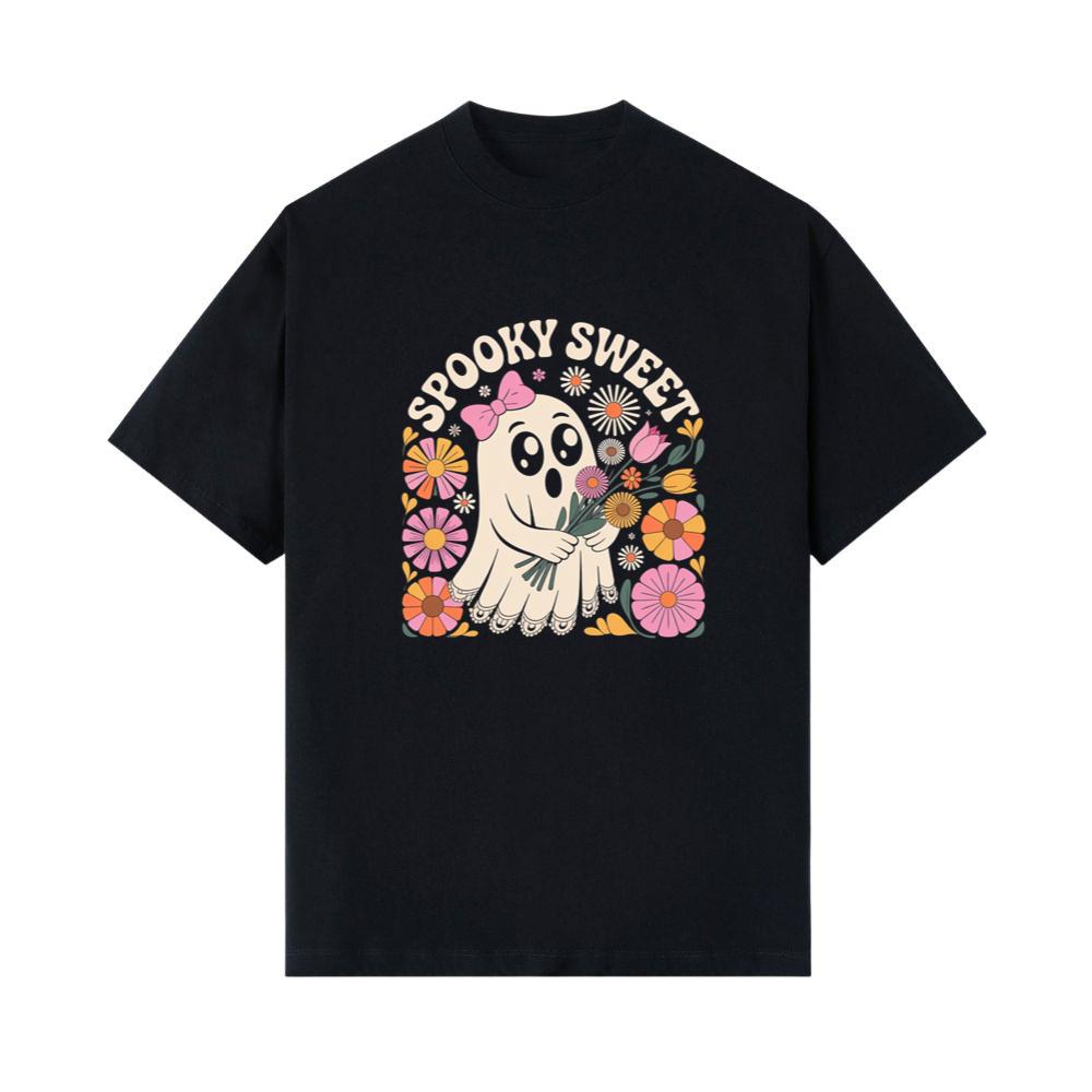 Spooky Sweet Ghost Flower Retro Cartoon Design T-Shirts