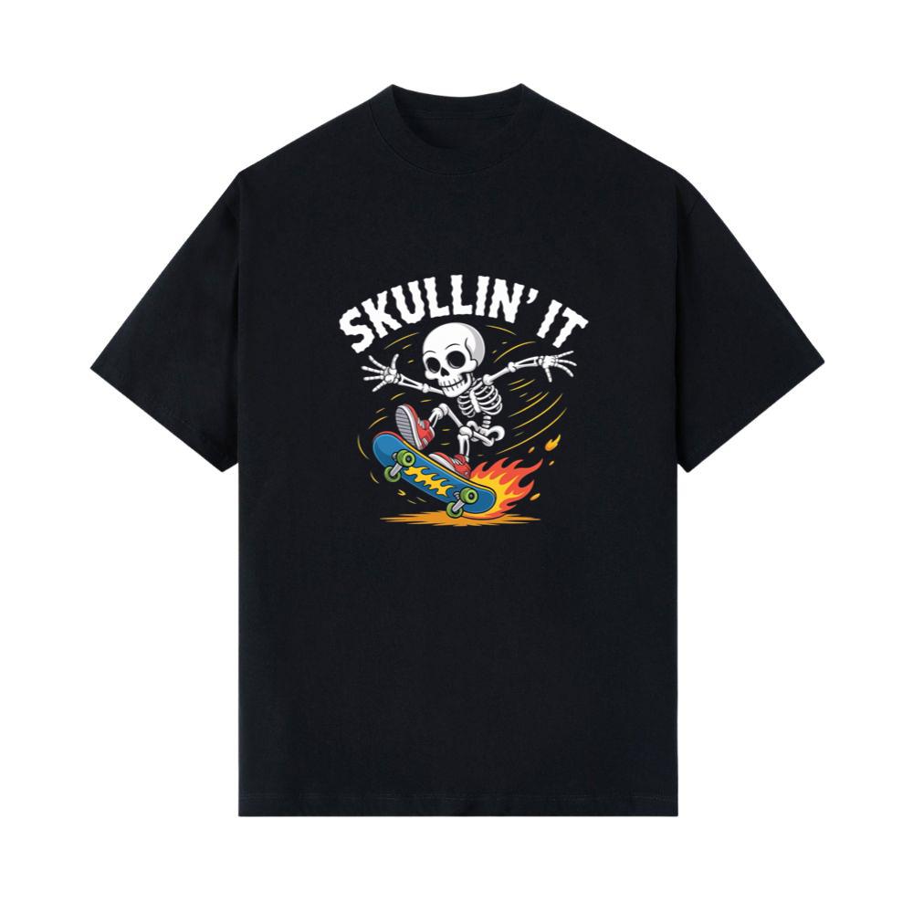 Skullin It Skeleton Skateboard Cartoon Graphic T-Shirts
